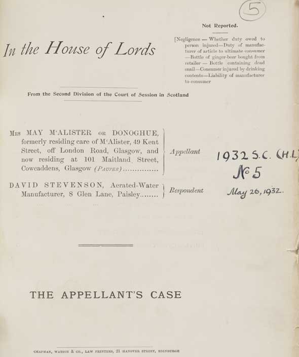 THE APPELLANT’S CASE CHAPMAN, WATSON & CO., LAW PRINTERS, 21 HANOVER STREET, EDINBURGH |