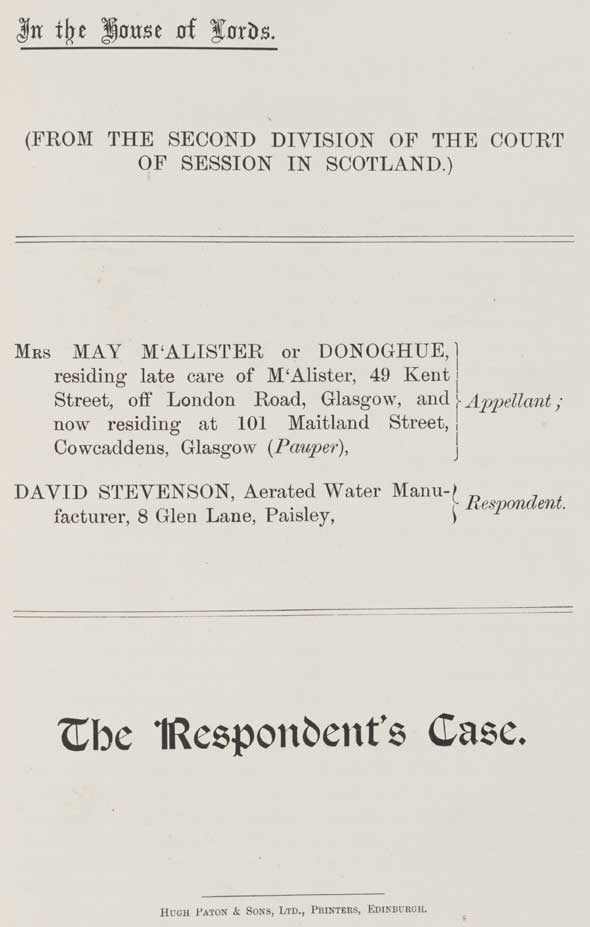 The Respondent’s Case. HUGH PATON & SONS LTD., PRINTERS, EDINBURGH |